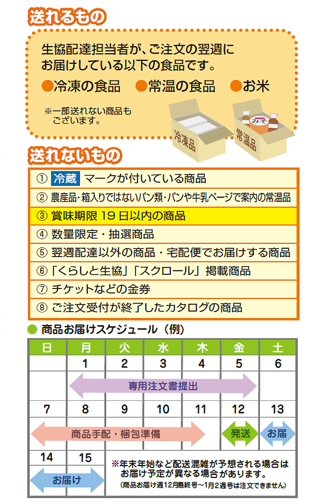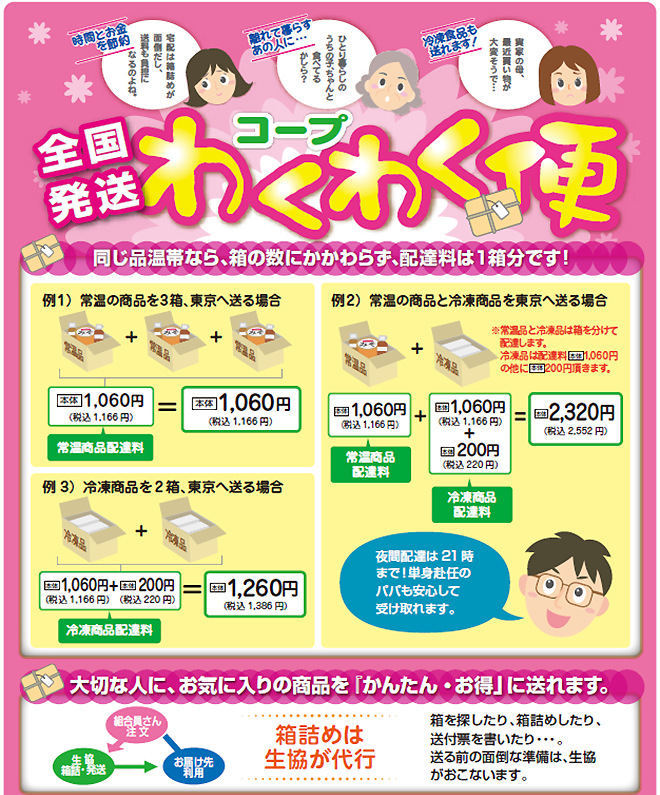 組合員さんのこえに応えて! 宅配でご注文の商品を全国発送できます コープわくわく便! |