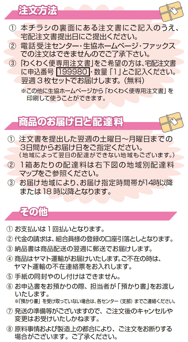 ※「コープわくわく便申込書」はページ下部にある「申込書ダウンロード」よりダウンロードしてください。 |