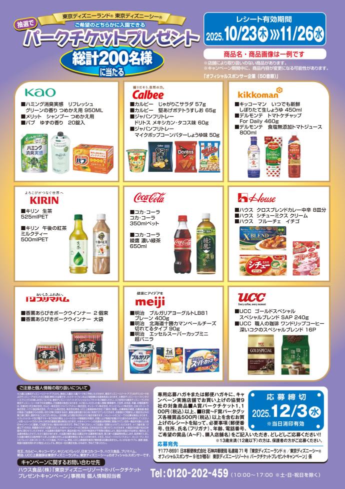 キャンペーン 【東京ディズニーランド・東京ディズニーシー】パークチケットプレゼントキャンペーン ※レシート有効期間 2025年10月23日(木)~11月26日(水)