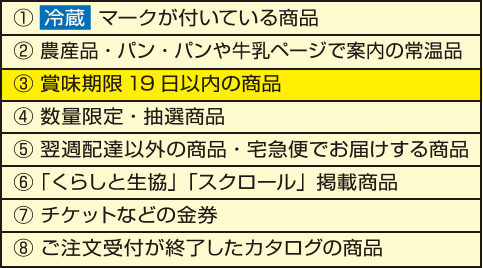 生協配達担当者が、ご注文の翌週にお届けしている以下の食品です。